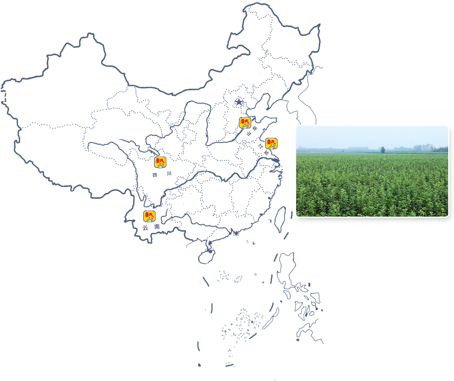 中国·mgm美高梅集团与山东、江苏、四川、云南等地银杏种植基地合作,运用绿色无公害技术实施银杏叶规模化种植与栽培,提供符合GAP标准的优质银杏叶药材。