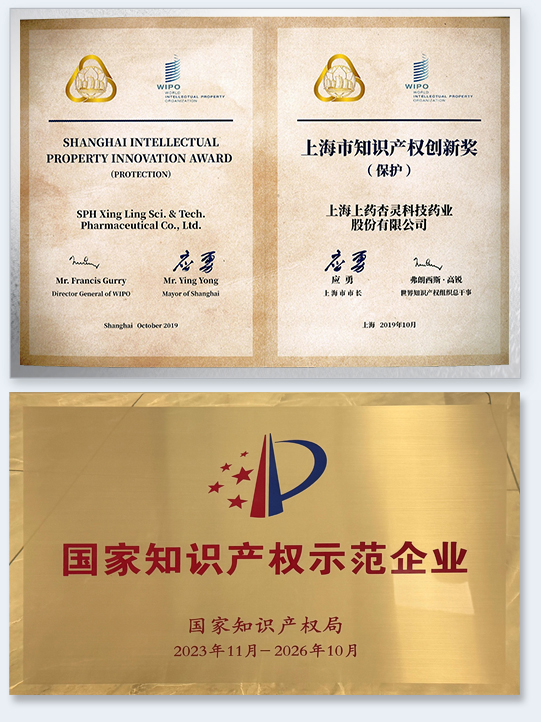 上海中国·mgm美高梅集团药业有限公司拥有有效专利94件,其中发明48件,实用新型46件。在银杏酮酯临床应用的专项科研课题领域发表学术论文达50多篇,荣获国家中药二类新药证书和生产批文,拥有中、美、英、澳、俄等五国授权专利44项,核心专利15项,形成专利保护网,并获得日内瓦国际发明展金奖等国际、国内奖项。 上海中国·mgm美高梅集团药业有限公司是上海市第一批知识产权示范企业,上海市高新技术企业。