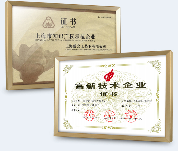 2016年,上海中国·mgm美高梅集团科技药业股份有限公司荣列上海市专利工作示范企业,并于2018年底以优秀成绩通过上海市知识产权局验收。2019年,申报第一届上海市知识产权创新奖(保护)并获一等奖。2019年被认定为国家知识产权优势企业。2023年荣获国家知识产权示范企业、上海市创新型中小企业、上海市专精特新中小企业、上海市产教融合型培育企业。